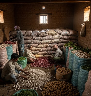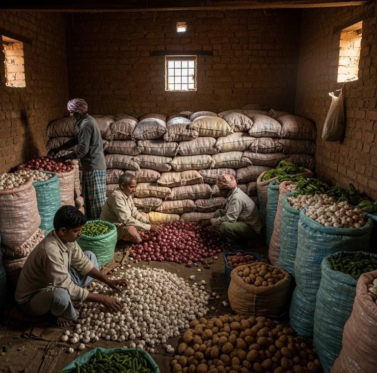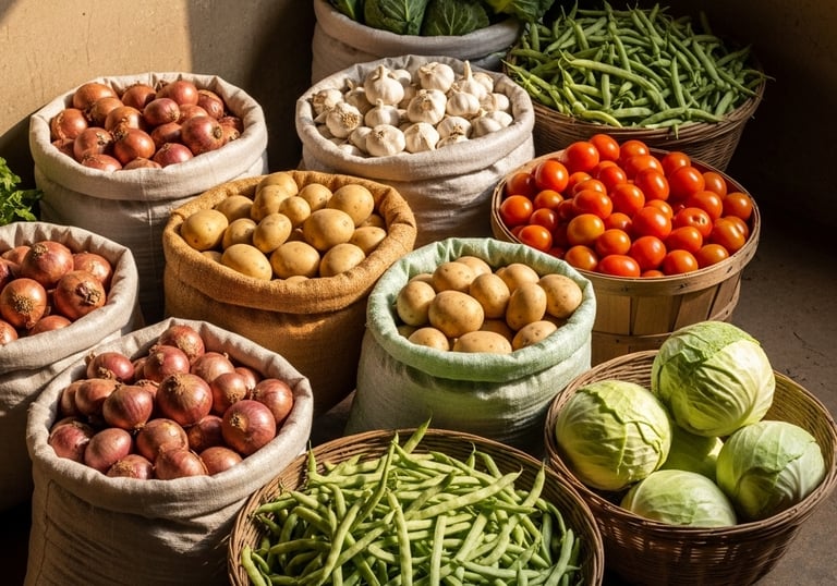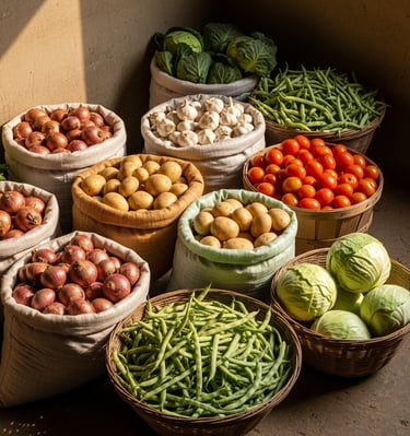 Fresh, naturally grown onions, garlic, and potatoes sourced directly from local farms — stored and delivered with utmost care to maintain freshness.